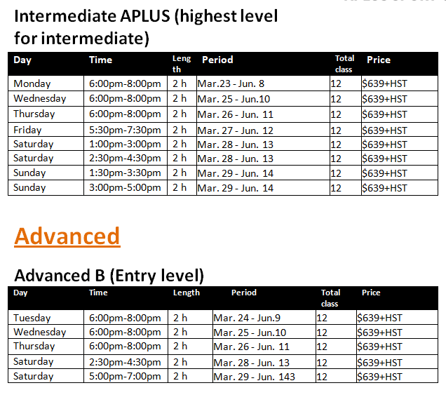 2026 Spring Term Schedule & Fees